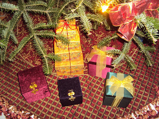 φωτισμένα και στολισμένα όμορφα. Στα πανύψηλα πράσινα δένδρα.